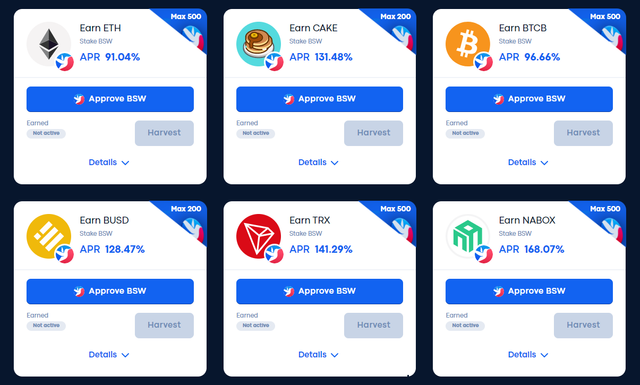 각 풀당 최대 500 BSW의 캡이 존재하는 관계로 많은 수량을 스테이킹할 수는 없으나, 장기적으로 파밍을 하기에 부담이 없는 코인들로 구성되어 있고 APR이 낮지 않은 편이기 때문에 계속해서 스테이킹 물량들이 지속적으로 증가하고 있습니다.