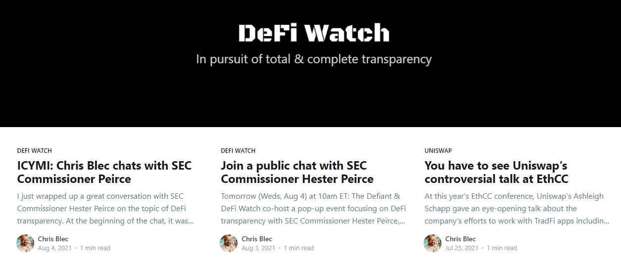 그래서 명목상은 탈중앙화되어 있는 조직이나, 초기 투자자나 파트너, 개발팀 등에서 형식적으로만 안건(프로포절)을 올리고 투표를 진행해 버리는 등 탈중앙성과 투명성의 특징을 확보하지 못하고 있다는 비판들도 있으며, 이에 따라 토큰을 보다 많은 사람들에게 고르게 배포하는 새로운 토큰 이코노미에 대한 연구를 비롯하여 DAO 거버넌스 관련 정보들을 보다 투명하고 공개적으로 다루는 DeFi Watch 같은 채널도 생기고 있습니다.