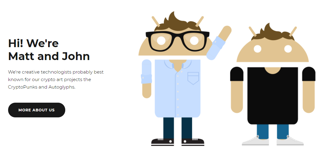 크립토펑크는 최근 들어서 주요 인플루언서들의 소셜 미디어 프로필에 등장하면서 유명세를 타기 시작했으나, 그 역사는 2013년으로 거슬러 올라갑니다. 맷 홀(Matt Hall)과 존 왓킨슨(John Watkinson)은 실험적인 프로젝트를 진행하는 뉴욕의 소프트웨어 개발사인 라바 랩스(Larva Labs)를 설립하고 모바일 앱 디자인, 시각 아트 프로젝트들을 진행해왔으며, 2017년 6월에 크립토펑크라는 대체불가토큰(NFT)이 이더리움을 기반으로 세상에 태어나게 되었습니다.