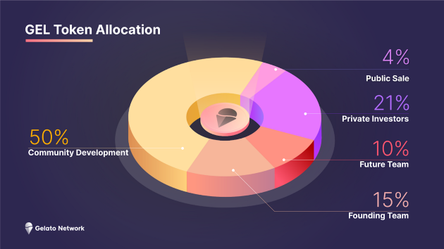 GEL토큰 총 공급량의 50%는 향후 몇 년 동안 젤라토 네트워크 생태계의 지속가능한 성장을 위해 사용되고 나머지 50%는 다음과 같이 분배가 됩니다.
