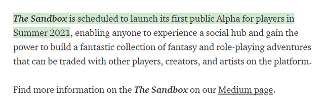 지난 포스팅에서 잠시 소개드렸던 것처럼 2021년말로 출시가 연기되었던 더 샌드박스 알파가 이제 곧 출시될 예정입니다. SAND와 LAND에 투자해왔던 사용자들과 Vox Edit을 공부해왔던 크리에이터, 파트너십을 맺고 투자를 통해 이스테이트를 매입한 파트너사까지 많은 사람들이 정말 오랫동안 기다려왔던 최고의 메인 이벤트라고 할 수 있습니다.