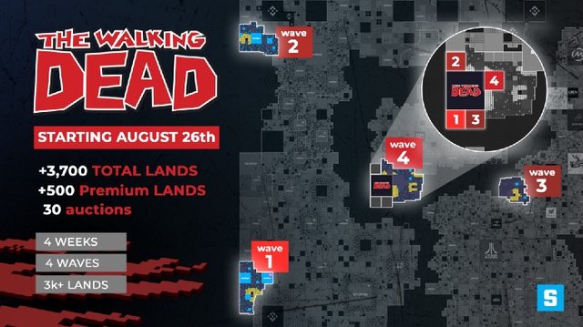 지난 써머 잼 랜드세일에서는 파트너 사들이 그다지 빵빵한 편(?)이 아니었던 관계로 인기가 그다지 높지 않았으나, 워킹 데드는 일단 메타버스 맵 상에서의 위치도 좋고 NFT번들도 인기도 높아 이번 랜드 세일은 개인적으로 기대가 됩니다.