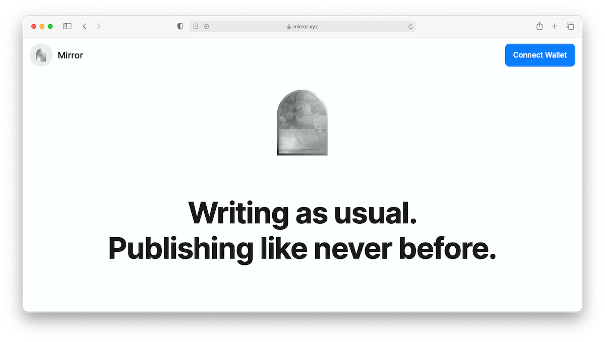 미러(Mirror)는 크리에이터와 독자를 직접 연결하는 것을 목표로 하는 이더리움 기반의 탈중앙화된 퍼블리싱 플랫폼입니다. 블록체인 기술의 특징을 최대한 활용하여 "생각을 표현하고 나누면서 수익을 얻을 수 있는 방식을 완전히 바꿔보자"는 것을 목표로 시작되었으며, 1년이 채 되지 않은 이 플랫폼은 코인베이스(Coinbase)의 초기 후원자인 유니온 스퀘어 벤처스(Union Square Ventures)로부터 1억 달러의 초기 투자를 유치한 바 있으며, USV와 Andreessen Horowitz를 포함한 여러 VC들로부터 1,000만 달러 상당의 추가 투자를 유치하면서 해외 커뮤니티에 많이 알려지게 되었습니다.