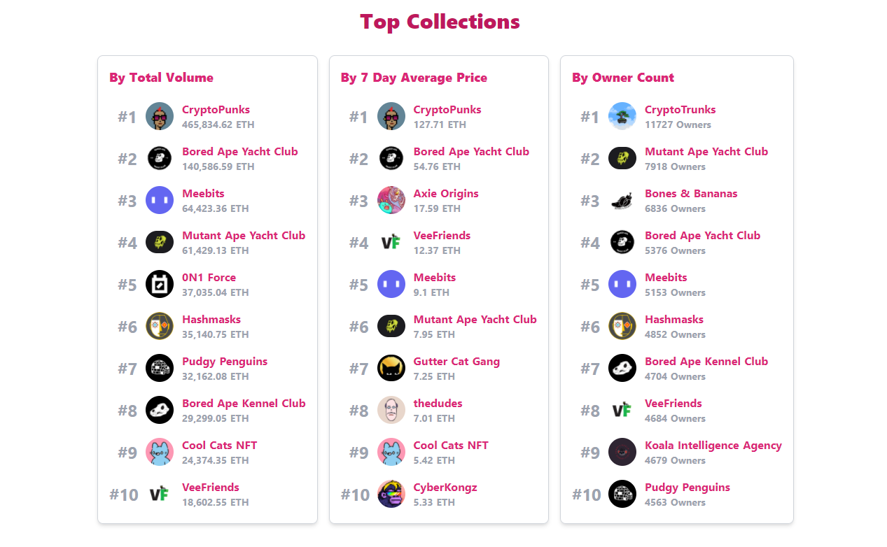 덕분에 크립토펑크를 선두로 하여 새롭게 출시되는 프로파일 NFT들의 흥행이 계속되고 있습니다. 프로파일 NFT가 뭔지, 가지고 있으면 뭐가 좋은지, 어디에 써야 하는지와는 무관하게 너도나도 NFT 뽑기에 참여하고 있는 것을 보면 2017~2018년도의 ICO 붐을 보고 있는 것 같습니다.