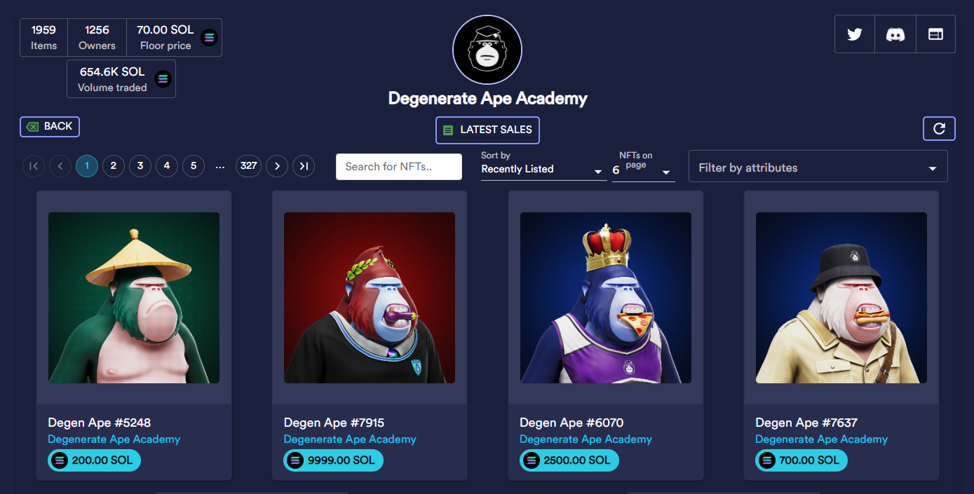 솔라나에서는 이 트렌드를 놓치지 않고 다양한 프로파일 NFT들을 시의적절하게 내놓기 시작했습니다. Degen Ape Academy, SolPunks, Aurory 등이 차례대로 흥행에 성공을 하면서 많은 사용자들이 SOL을 사놓고 대기하는 현상이 벌어지기 시작했습니다.