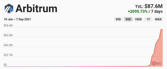 그 중에서도 아비트럼의 경우 7일 만에 TVL이 2100% 가량 상승하면서 굉장히 가파른 상승을 보여주며 두각을 나타내고 있고, 현재 아비트럼에서의 최초 NFT 판매 및 IDO 등의 스케쥴도 등장하고 있습니다.