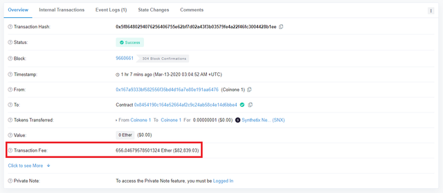 약 3개월 전쯤에 코인원 거래소 직원이 SNX토큰의 상장과 관련하여 지갑간 트랜잭션 체크를 하다가 656 ETH를 수수료로 지불한 사고도 있었는데, 이번에는 그보다 약 16배 가량 큰 수량이 GAS비용으로 지불된 셈입니다.