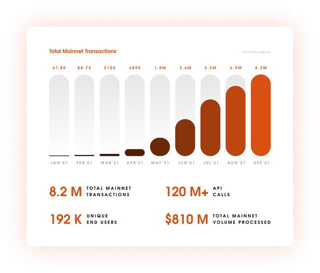 Biconomy는 70개 이상의 댑에서 발생하는 50,000개 이상의 일일 트랜잭션을 처리하고 있으며, 현재 Hyphen의 경우에는 이더리움 메인넷과 폴리곤 간의 크로스 체인 자산 이동을 지원하고 있습니다.