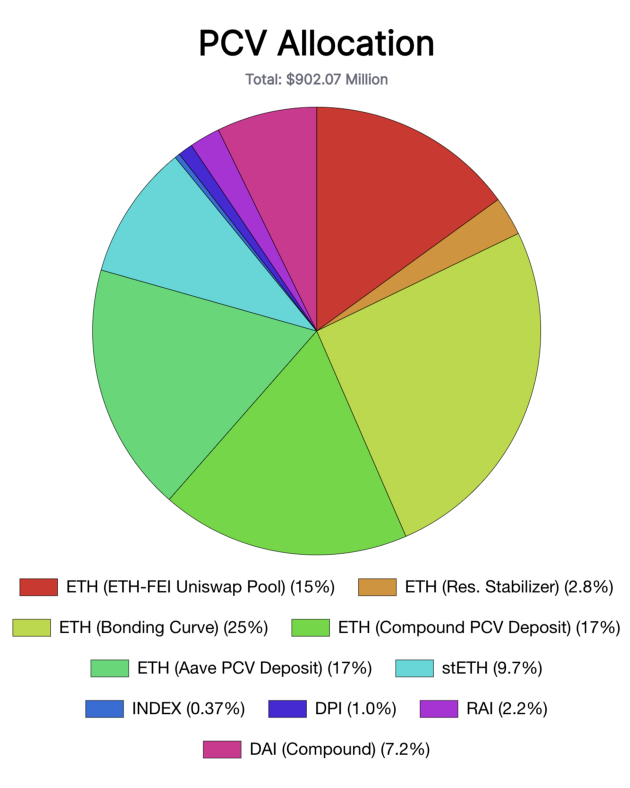 Fei v1은 프로토콜 제어 가치(PCV; Protocol Controlled Value)라는 개념을 DeFi 영역에 도입하였습니다. PCV는 탈중앙화된 스테이블코인인 FEI의 가치를 달러와 완전하게 페깅하는 동시에 Aave, Compound, Rari Capital, Lido, Index Coop과 같은 탈중앙화자율조직(DAO)들과의 파트너십에 수억 달러를 투입함으로써 중요한 가치 동인이 되었습니다.
