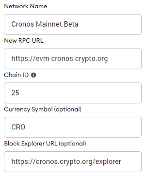 - 네트워크 이름: Cronos Mainnet Beta