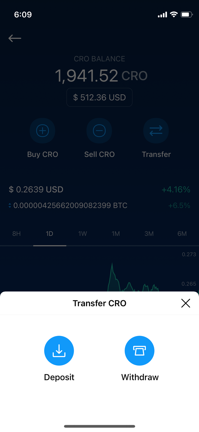 - 크립토닷컴 앱에 계정을 생성한 뒤에 크립토닷컴의 Crypto Wallet 주소(cro로 시작)로 CRO토큰을 출금합니다