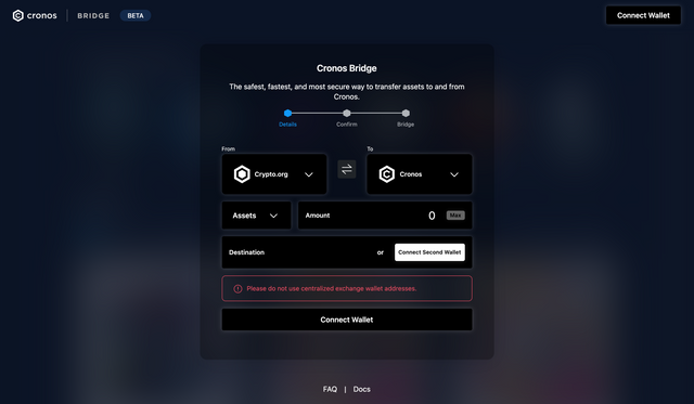 - 브릿지 주소 : https://cronos.crypto.org/bridge