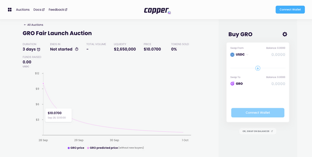 Copper는 토큰 출시 경매(TLA)에 참여할 수 있는 가장 개방적이고 사용자 친화적인 방법을 제공하는 플랫폼으로 밸런서 프로토콜의 유동성 부트스트랩핑 풀(LBP)을 기반으로 합니다.