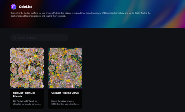 해당 NFT를 보유하는 경우에 대한 별도 혜택이 있다고 발표된 바는 아무것도 없지만 현재 코인리스트의 NFT는 FiatWorks라는 이름으로 오픈씨에서 FP 0.75 ETH 정도에서 거래가 되고 있습니다.