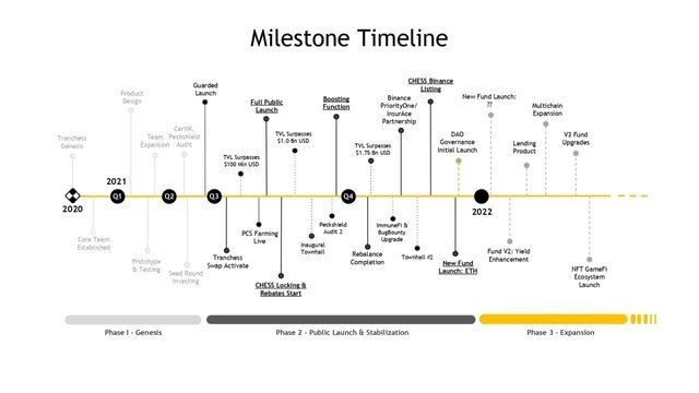 전반적인 암호화폐 시장의 약세와 BSC에서 많은 자금들이 루나, 솔라나, 아발란체, 하모니, 니어, 레이어2 등으로 이동함에 따라 트랜체스의 거버넌스 토큰인 CHESS의 가격도 많이 하락하였으나 트랜체스는 큰 사건/사고 없이 로드맵을 착실히 이행 중에 있습니다.
