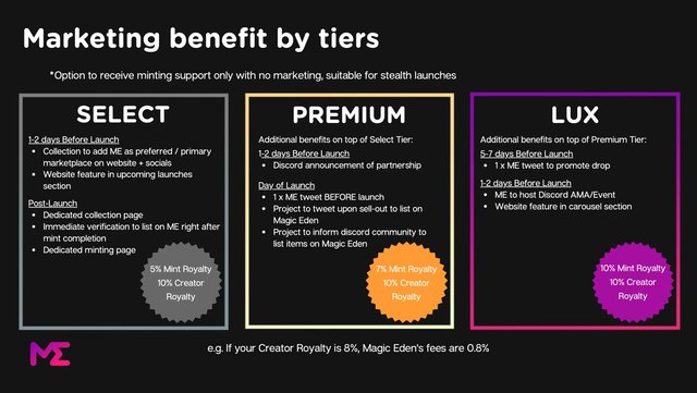 - 매직에덴은 런치패드로 진행된 프로젝트의 NFT 발행 수익의 5~10%를 가져가는 동시에, 창작자의 로열티의 10%를 수취하는 것으로 알려졌습니다