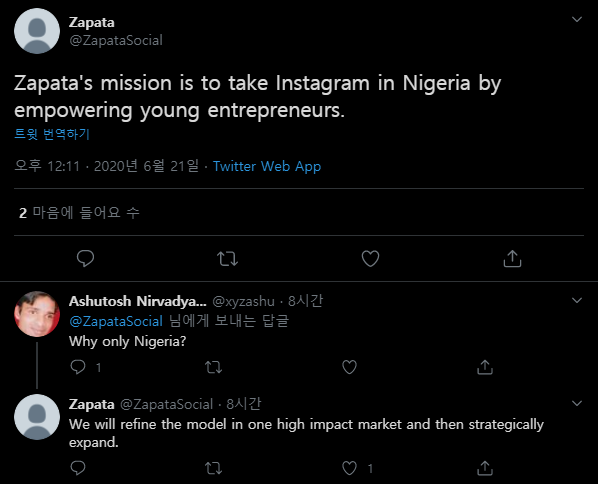 거기에 더불어서 Zapata라는 체인은 나이지리아의 젊은 기업가들에게 활기를 불어넣는 것을 주 목표로 한다는 것을 밝혔는데, 런칭 전부터 특정 국가를 타게팅하고 있는 자세한 이유에 대해서는 잘 파악을 못하겠네요.