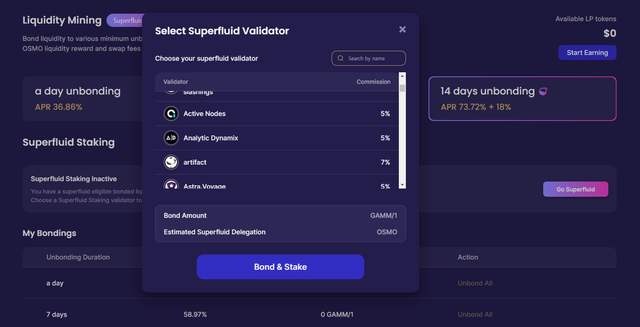 해당 기능이 출시되면 위에서 볼 수 있는 것처럼 다양한 유동성 풀에서도 Superfluid Staking을 이용하는 것이 가능해집니다.