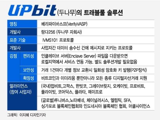 두나무 자회사인 람다256에서 개발 중인 트래블룰 솔루션 베리파이바스프에 얼라이언스 멤버로 정식 등록이 되는 경우 업비트에서 출금을 지원하는 거래소라고 봐도 무방합니다