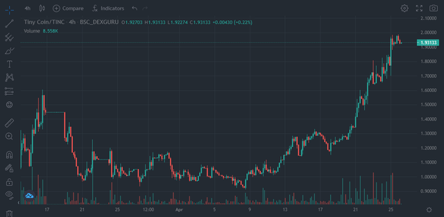 - Tiny Vault의 높은 APR 때문인지, 아니면 NFT마켓플레이스의 지속적인 거래량 증가와 빠른 프로덕트 출시 덕분인지는 몰라도 최근 들어 TINC가 좋은 흐름을 보여주고 있습니다