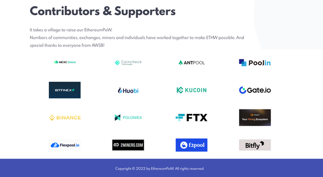 Ethereum PoW의 써포터즈 명단에 있는 거래소가 무조건 ETHW의 상장 및 거래를 지원하는 것은 아니므로 유의할 필요가 있습니다.