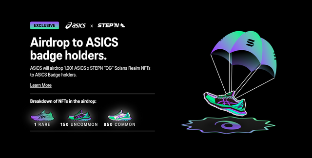 다만 구매 후 ASICS Badge NFT가 솔라나 지갑으로 즉시 들어오는데, 이 NFT의 홀더들은 향후 추첨을 통해 ASICS x STEPN NFT 에어드랍을 받을 수 있습니다.