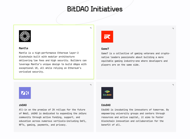 현재까지 BitDAO에서는 총 4개의 프로젝트를 인큐베이팅하고 있고, 자체 레이어1 체인을 구축했던 바이낸스와는 달리 이더리움의 레이어2 확장 솔루션에 집중하고 있다.