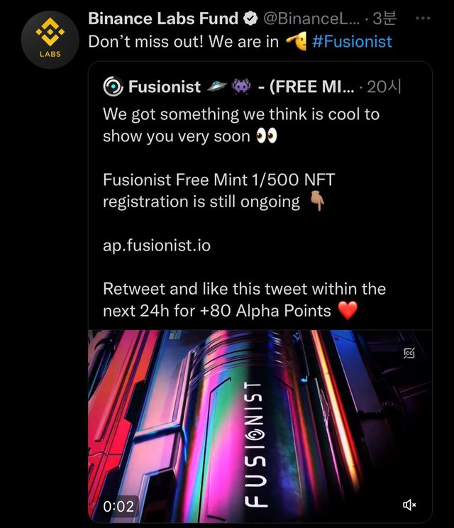 안녕하세요, 디온입니다. 일전에 [Fusionist] Alpha Prestige NFT 민팅 이벤트 안내 (필참 추천) 포스팅을 통해 소개드렸던 Sci-Fi 게임 프로젝트 퓨저니스트(Fusionist)가 바이낸스에서 IGO(Initial Game Offering)을 진행합니다.
