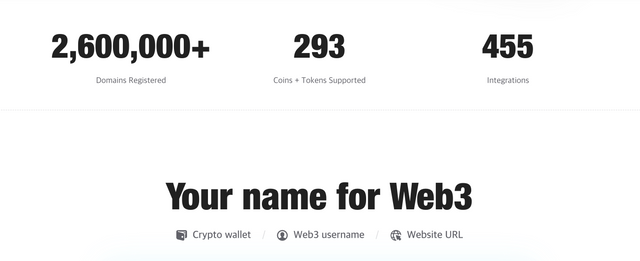 제 기억으로는 약 1년 전쯤부터 해당 서비스를 시작했으며 현재는 260만 명 이상이 도메인을 등록했네요. 그리고 1인치 월렛, 코인베이스 월렛, 팬텀 월렛 등 455개 이상의 파트너사 플랫폼 통합도 진행되고 있습니다.