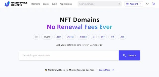 - Unstoppable Domains 바로가기 : https://unstoppabledomains.com/?ref=c5fd44a5df784c9