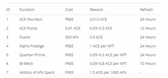 (1) Ace Fountain (0.012 ACE) : 12시간에 한 번씩 획득 가능 (무료)