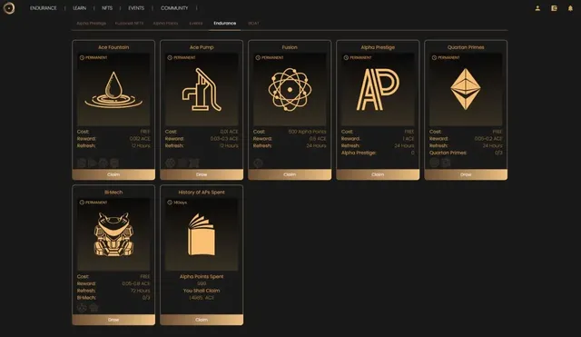 ✅ ACE토큰은 NFT보유 또는 알파 포인트 사용 등으로 획득