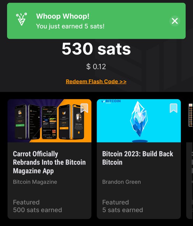 이메일을 통해 로그인을 하면 여러 뉴스 기사와 아티클들을 확인할 수 있는데, 읽을 때마다 5 사토시를 얻을 수 있습니다. (예외적으로 이벤트를 하는 아티클의 경우에 500 사토시)