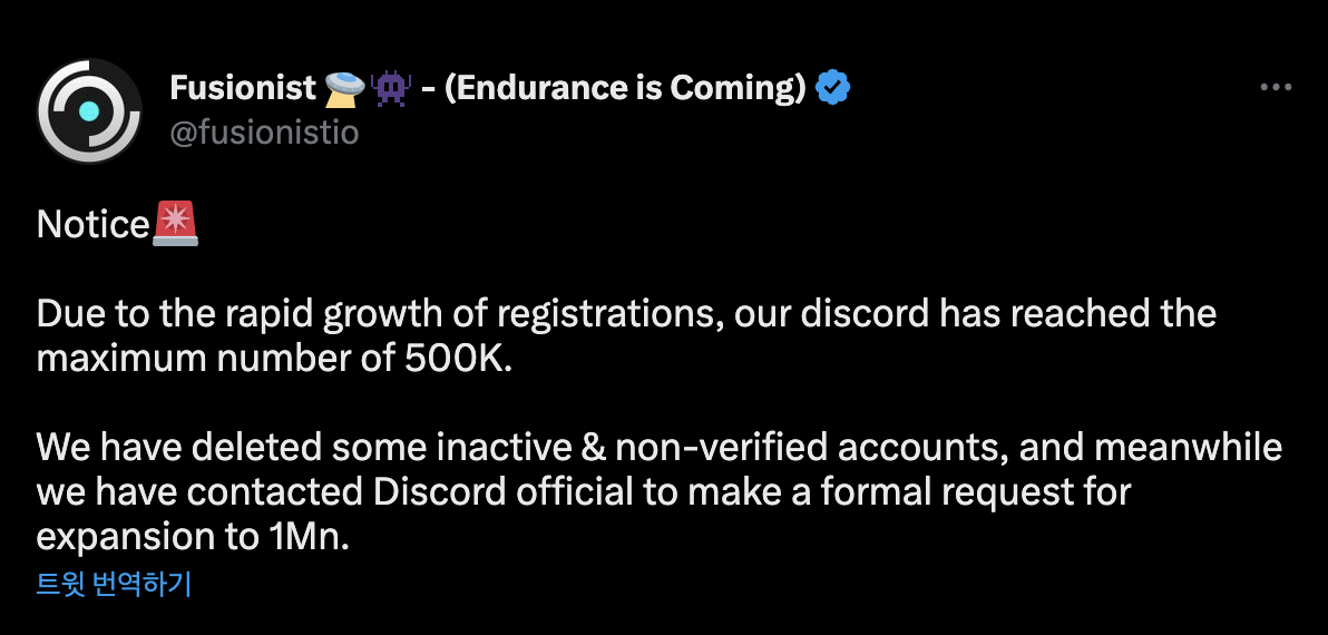 퓨저니스트의 공식 디스코드 커뮤니티는 멤버 수가 맥시멈 캡인 50만 명을 돌파하면서 디스코드 관계자에게 연락하여 1백만 명으로 커스터마이징하여 증설했다고 합니다.