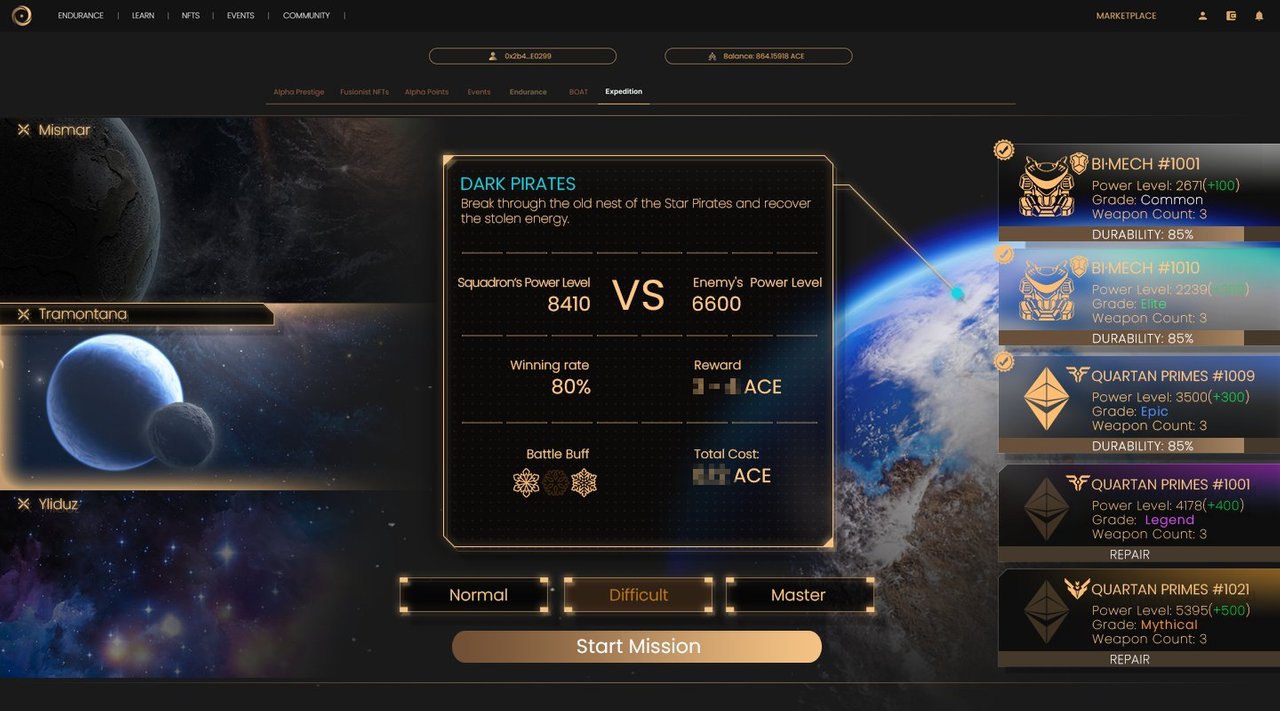 - Expedition은 퓨저니스트의 대표 NFT 시리즈인 알파 프리스티지(AP), 쿼튼 프라임(QP), Bi-Mech(BM) NFT를 실제로 활용할 수 있는 게임입니다