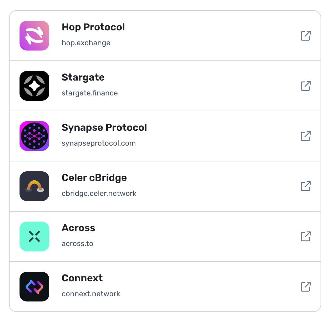 - Stargate : https://stargate.finance/transfer