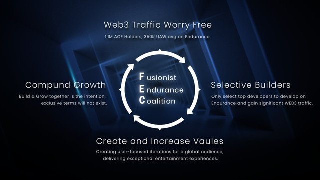 퓨저니스트 팀에서는 FEC(Fusionist Endurace Coalition)이라는 연합체를 구성하고 DID, 소셜 미디어, 게임 등에 이르기까지 다양한 프로젝트들이 Endurance 메인넷 상에서 ACE토큰을 매개로 동작할 수 있는 생태계를 구축하는 공동 작업을 진행하고 있네요.