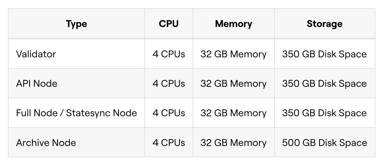 - 다음의 노드 요구 스펙을 갖춘 팀