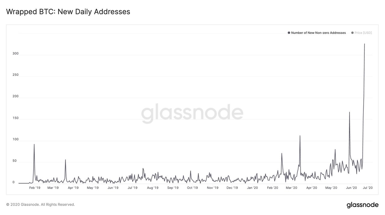 최근 DeFi에서의 Yield Farming 기대수익률이 꽤나 높아지면서 Wrapped BTC 를 보유하고 있는 지갑주소가 2,880개를 초과하며 급격하게 상승하는 모습을 보이고 있는데 이는 연초대비 100%가 상승한 수치입니다. 즉 거래소에 마냥 보관하고 있는 비트코인들이 조금씩 DeFi의 유동성 공급을 위한 개인 지갑 물량으로 증가하고 있다는 뜻입니다.