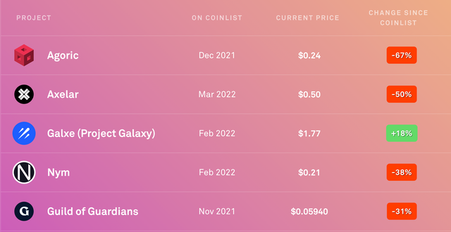 불행 중 다행인지는 몰라도 한국인 밴 이후 코인리스트에서 토큰 세일을 진행한 프로젝트들의 퍼포먼스도 그다지 좋지는 않습니다.