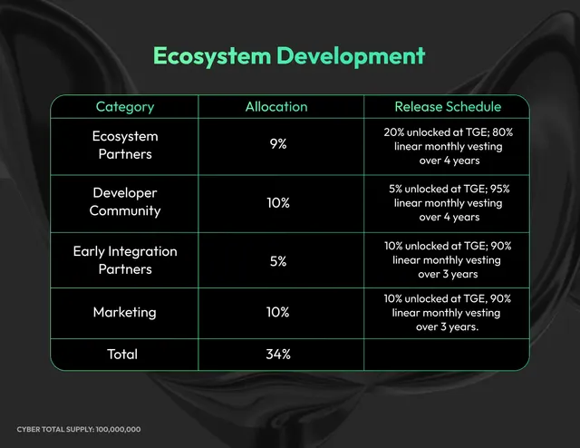 - 총 발행량 : 100,000,000 CYBER (1억 개)