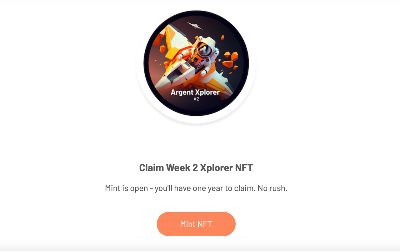 매 주 마다 Argent Xplorer 웹사이트 및 트위터 공식 채널 등을 통해 간단한 미션이 공개됩니다. 해당 미션을 수행하고 NFT를 클레임해서 모아나가면 됩니다. 공식 웹사이트는 아래의 링크를 참고하세요.