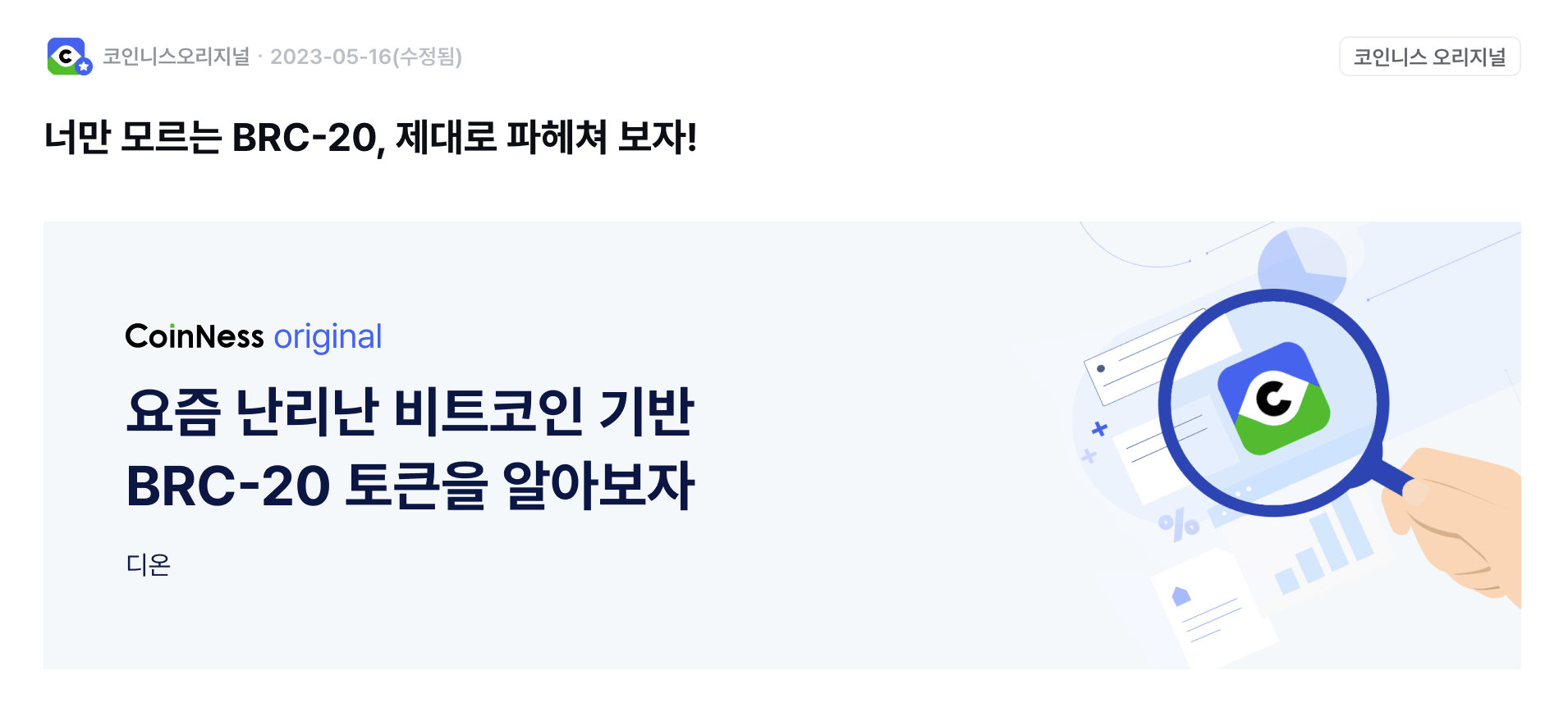 BRC-20에 이어 그 다음 트렌드로 어떤 것들이 등장하고 있는지, 그리고 어떤 것에 관심을 가져야 할지에 대해서 다룬 후속 콘텐츠도 곧 코인니스 오리지널에 퍼블리시 될 예정입니다.