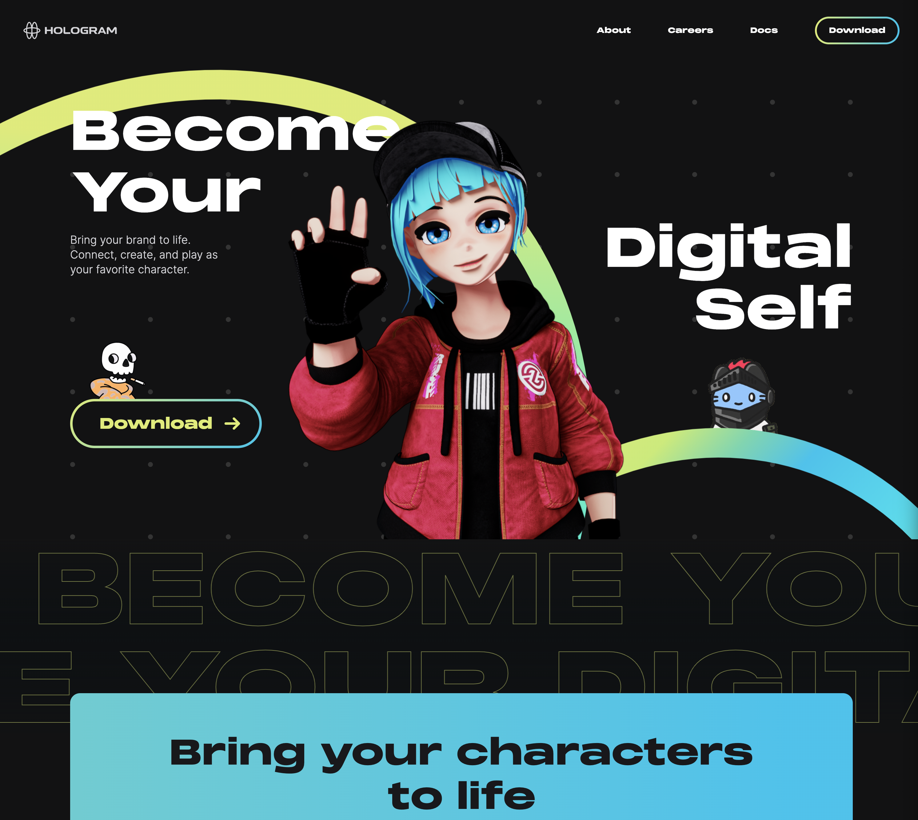 이 팀은 단순히 3D 아바타를 만들어서 놀 수 있는 소셜 미디어를 만들겠다 이런 것보다는 다양한 Web3 NFT 프로젝트들과 협업을 위한 150,000개 이상의 2D + 3D 리소스를 제공하고, Web3 데이터를 포함한 HoloGPT를 제공하는 등 다양한 리소스를 제공하는 AI 체인을 출시하는 것을 목표로 하고 있습니다.
