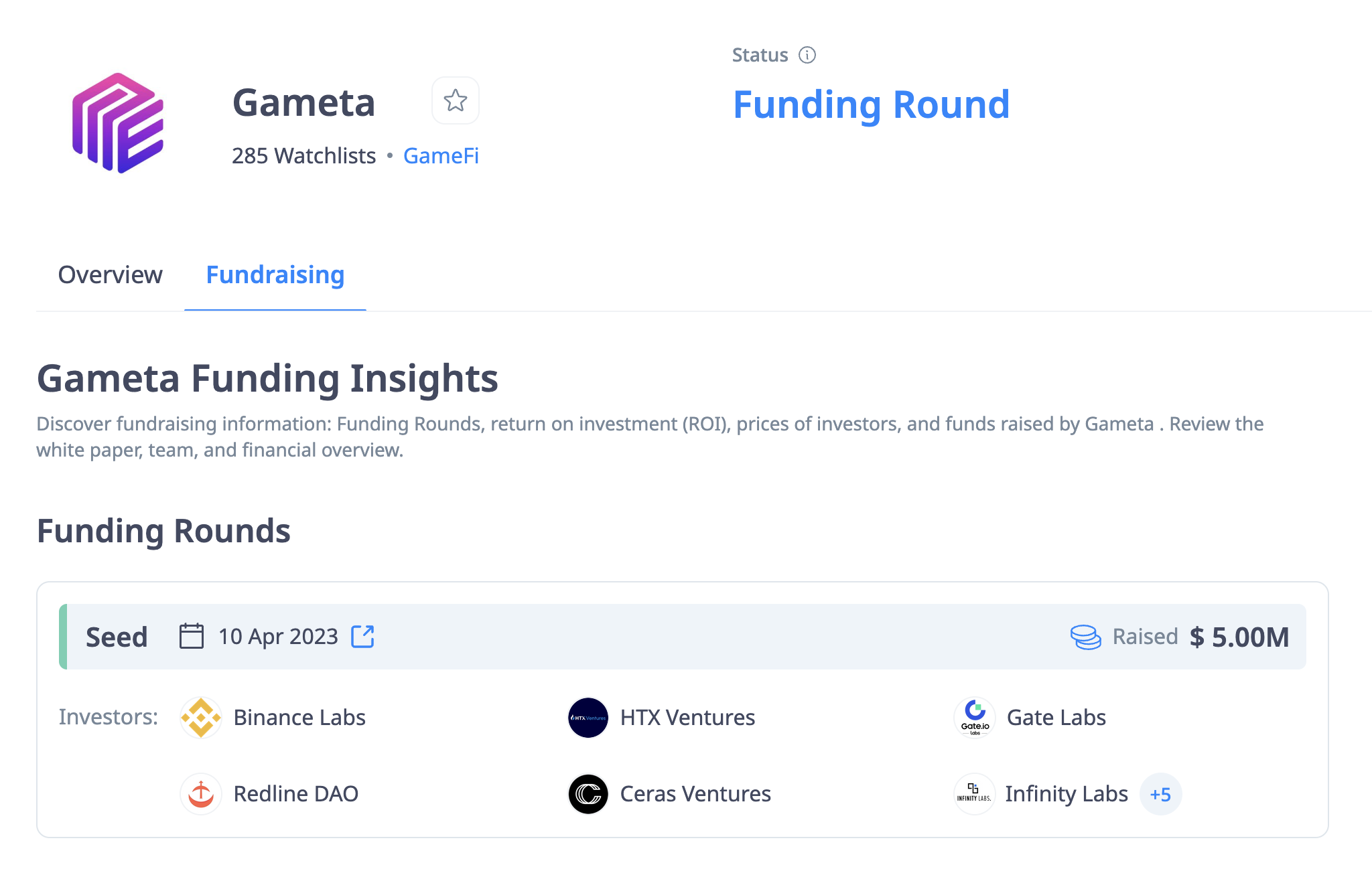 Gameta는 BNB체인으로의 마이그레이션 이후 MVB 우승을 통해 바이낸스 랩스, HTX Ventures(구 후오비 벤처스), 게이트 랩, Arcane 등으로부터 5백만 달러의 시드 투자를 유치하는 엄청난 성과를 이뤄냅니다.