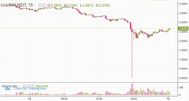 - 이번 데이터 업데이트 중단 문제로 인해 바이낸스에서는 LINK토큰이 개당 0.0001 달러에 거래되며 90달러로 LINK토큰을 90만개를 살 수 있었던 사태가 벌어졌다고 합니다.