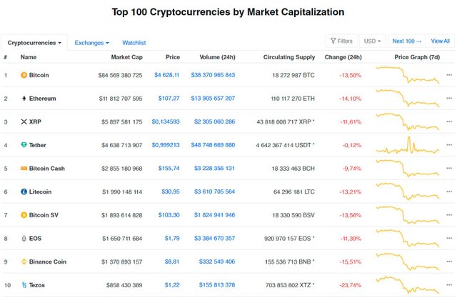 현재 비트코인 가격은 시장이 어느 정도 회복되기 시작했던 2019년 4월의 가격으로 회귀하였는데, 이전 고점인 1,200만원 정도에서 반토막이 나기까지 불과 한 달 밖에 걸리지 않았고, 1,000만원 대가 깨지는 데는 채 10일이 걸리지 않았습니다.