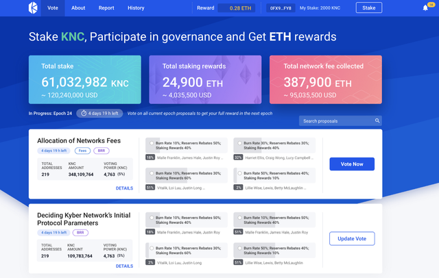 스테이킹하고 투표에 참여하면 그에 대한 보상으로 ETH를 받을 수 있고, 이것이 일시적인 배당의 형식이 아닌 플랫폼의 성장에 따라 지속될 수 있는 모델이라는 점에서 KNC에 대한 투자를 매력적으로 보고 있는 투자자들이 꽤 많습니다.