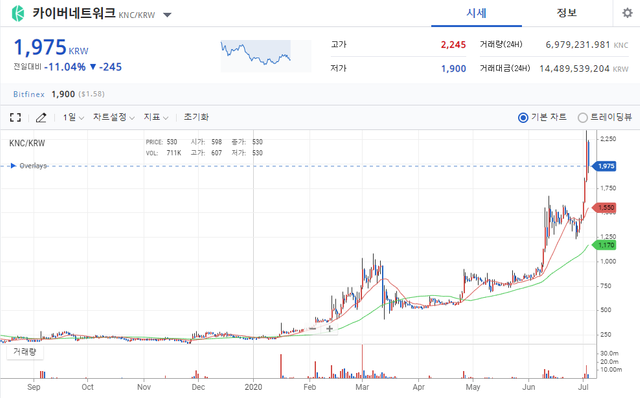 오늘은 카이버네트워크가 미친듯이 가격이 오르는 이유에 대해서 간단히 분석을 해보겠습니다.