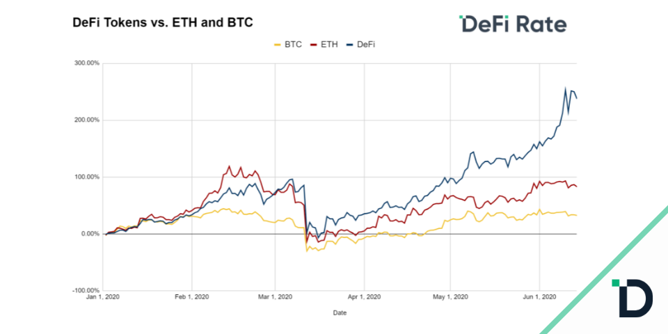DeFi Rate에서 제공하는 2020년 한 해 동안의 BTC, ETH, DeFi토큰들의 수익률을 비교해보면 DeFi토큰들의 평균 수익률이 비트코인이나 이더리움의 수익률을 2배 이상 상회하는 것을 확인할 수 있죠.